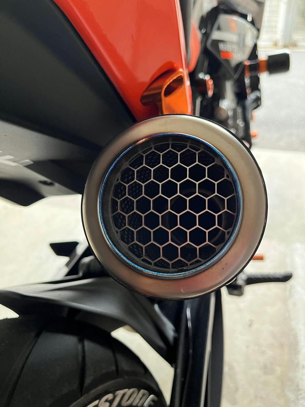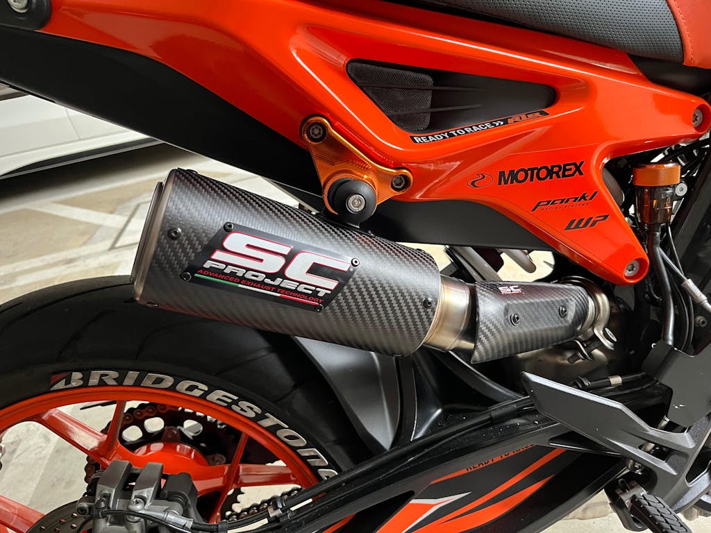 オートクレーブ成型で作られたカーボン製ヒートガードには、レーザーによるSC-PROJECTの刻印が施された、チタンプレートが装着されております。