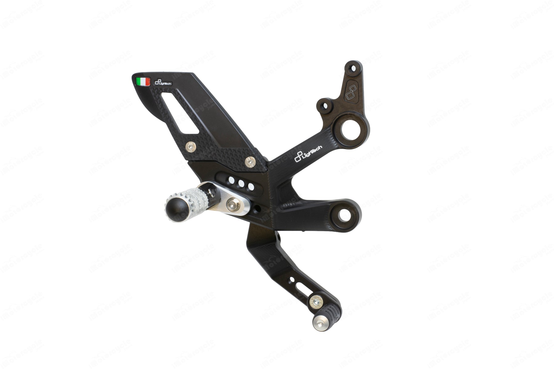 また、ステップバーとフロントトゥーペグ自体が可変になる事により、ステッププレートを稼働させずに様々な足のサイズにも対応できます。