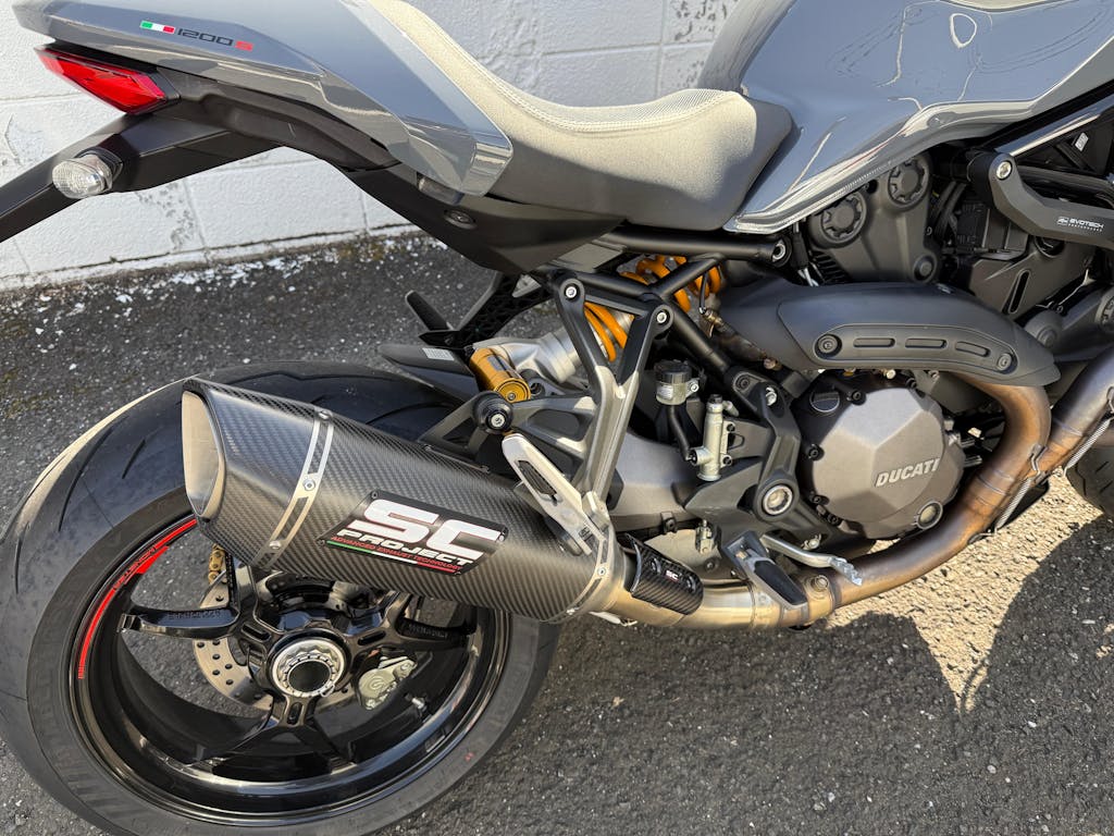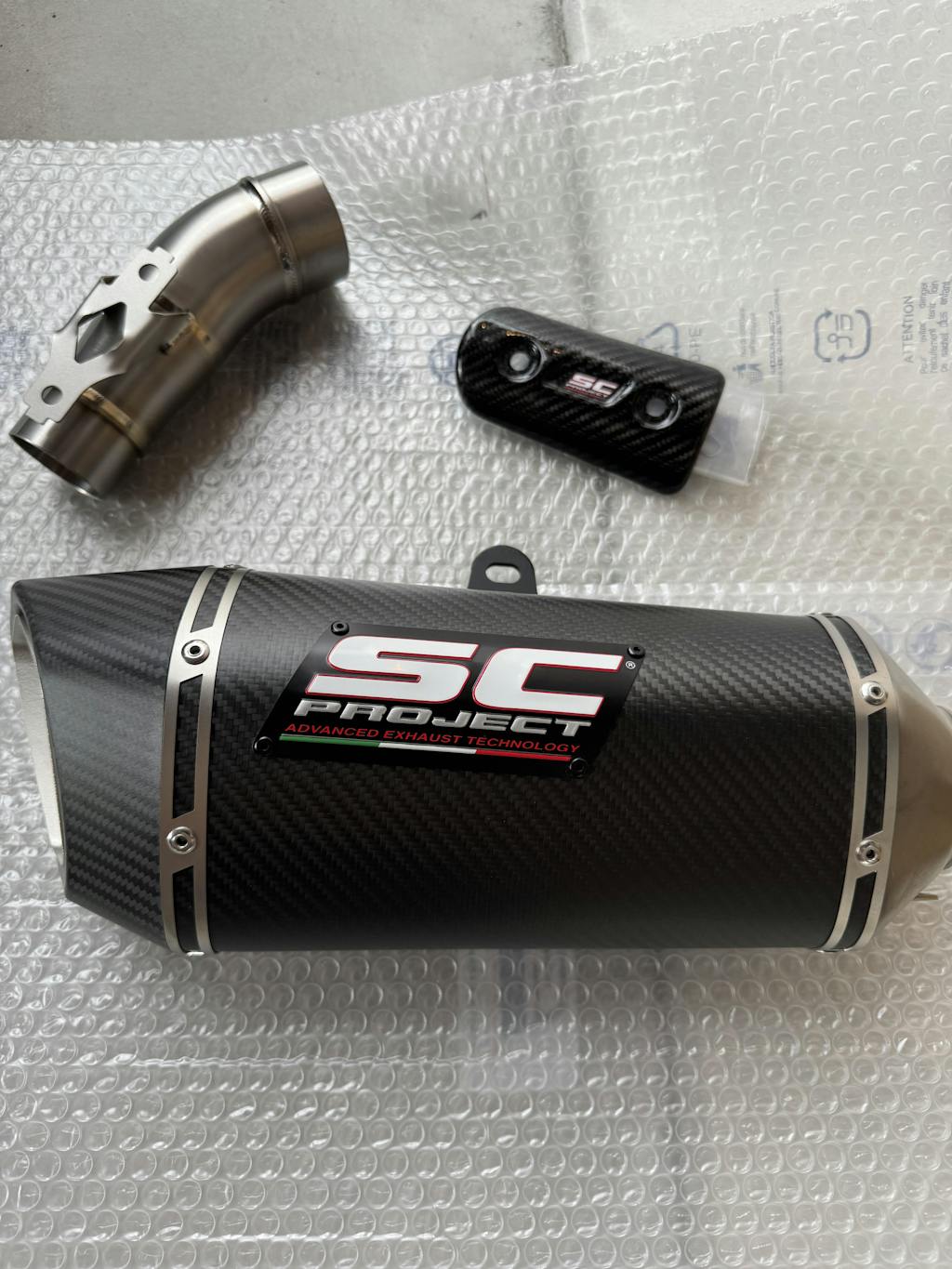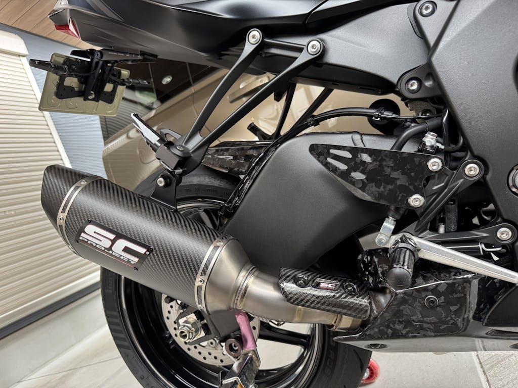 私は自分で交換しましたが、取付精度も文句無しでした。唯一の不満点は、カーボンヒートプロテクションを好みの角度に調整したところ、パイプクランプのボルトが必要以上に長すぎる為、スイングアームに当たってしまいました。それを避ける為、カーボンヒートガードを寝かした角度で取り付けなければなりませんせした。