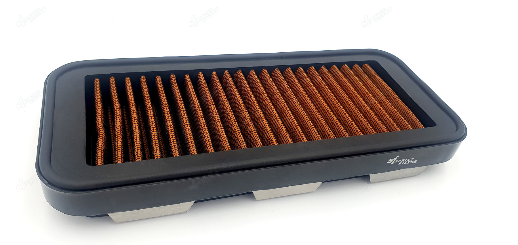 Sprint Filter (スプリントフィルター) 製のエアクリーナーは、MotoGPやWSBKなどの世界選手権で実績を持つ製品です。乾式フィルターのためオイルの塗布は不要で、純正エアフィルターと同じメンテナンスおよび交換サイクル時に、エアブローを使用しゴミを飛ばすことにより、繰り返し使用することができるため、ロングライフを実現しました。